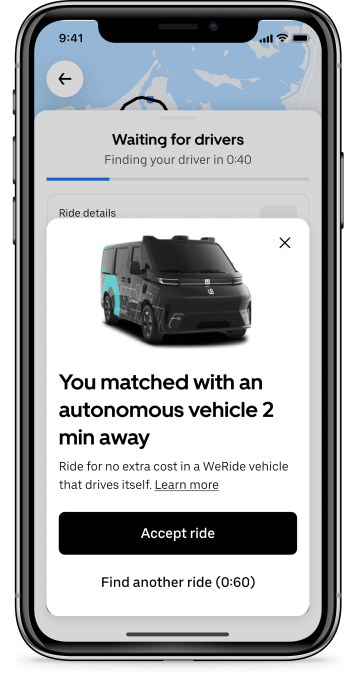 Uber riders that choose Uber Consolation or UberX in Abu Dhabi could also be matched with a WeRide robotaxi. Riders who need to enhance their possibilities of being matched with a completely autonomous automobile can choose the “Autonomous” possibility in the Uber app. Uber and WeRide are additionally working with fleet operator associate Tawasul.