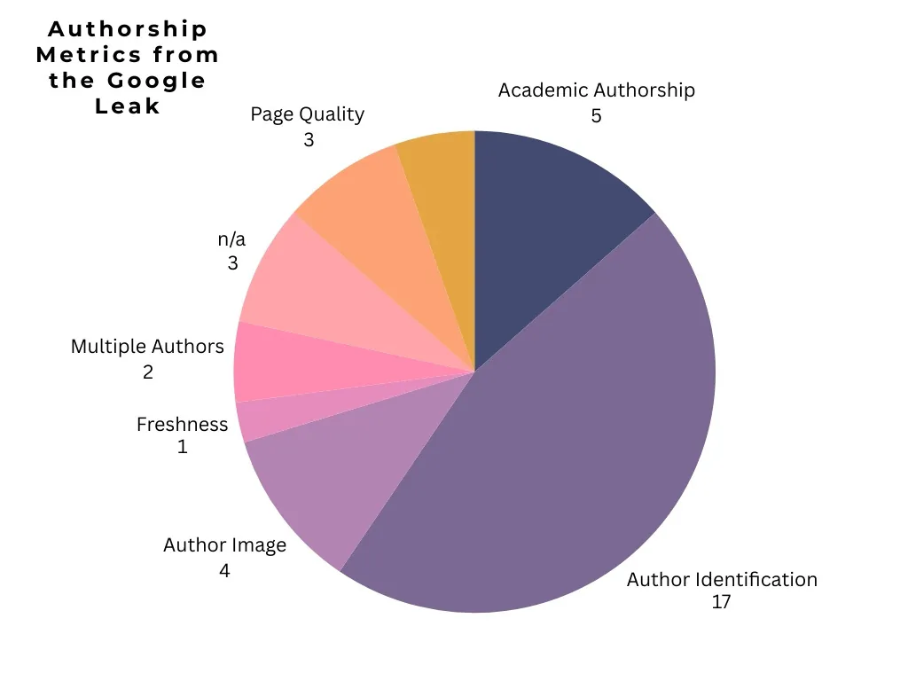 In breaking down all metrics from the leak that point out the phrase “creator,” the beneath is how Google perceives and values authorship. As all the time, this is an imperfect science, but it surely’s fascinating to notice that of the 35 classes I reviewed, nearly half are associated simply to figuring out the creator.