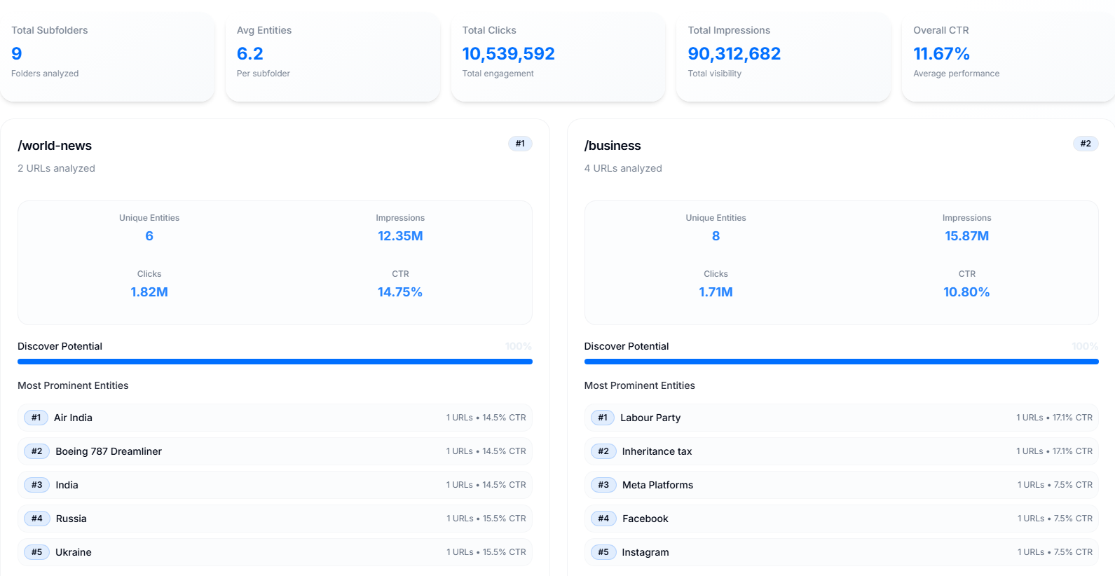 Comparatively easy, however you need to know which subfolders have a tendency to generate extra impressions and clicks on common in Uncover. This is significantly worthwhile should you work on bigger websites with a variety of subfolders and excessive content material manufacturing.